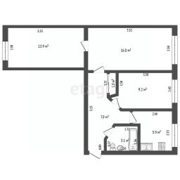 Планировка отличается практичностью: просторный коридор, три спальни и совмещенный санузел, отделанный плиткой. Окна выходят на две стороны, обеспечивая постоянное естественное освещение и эффективное проветривание всех помещений. Большая часть мебели и бытовой техники остается новому владельцу.