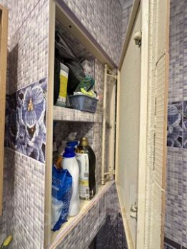 Kухня компактная, оборудована всем необходимым, включая встроенную технику. Санузел совмещенный, выполнен в современном стиле с качественной плиткой и сантехникой.