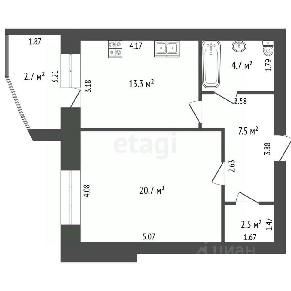 Объект отличается увеличенной площадью и грамотной планировкой: изолированная большая комната, практичная гардеробная зона и особенно выделяется кухня значительного размера, что выгодно отличает квартиру от стандартных предложений. Санузел раздельный, полностью выполнен в качественной плитке. Состояние объекта отличное — выполнен добротный современный ремонт, готовый к заселению. Ключевым преимуществом является большой балкон с видом на город, представляющий собой дополнительное пространство.